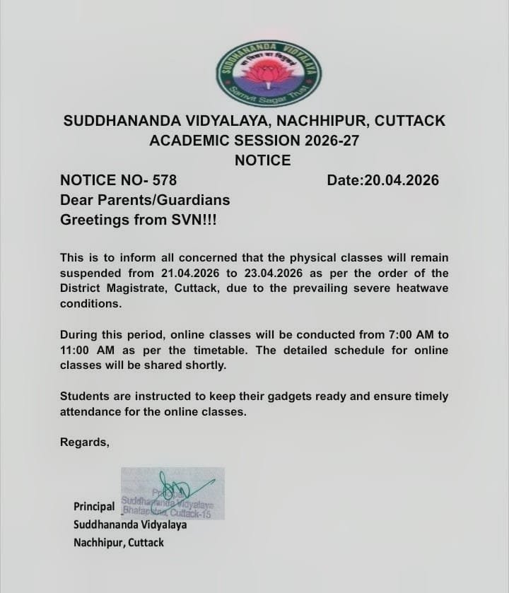 The special academic institution, Suddhananda Vidyalaya functioning under Samvit Sagar Trust located at Nachhipur in district of Cuttack was established by Pujya Swami Suddhananda Ji in the year 2002 with the strength of nine students. Our institution has been steadily expanding over the years and the present strength of the school has grown up to 461 having classes from LKG to Std X. The school had already got the N.O.C from the Govt of Odisha up to Std X, and now the school is affiliated to CBSE New Delhi up to class XII.